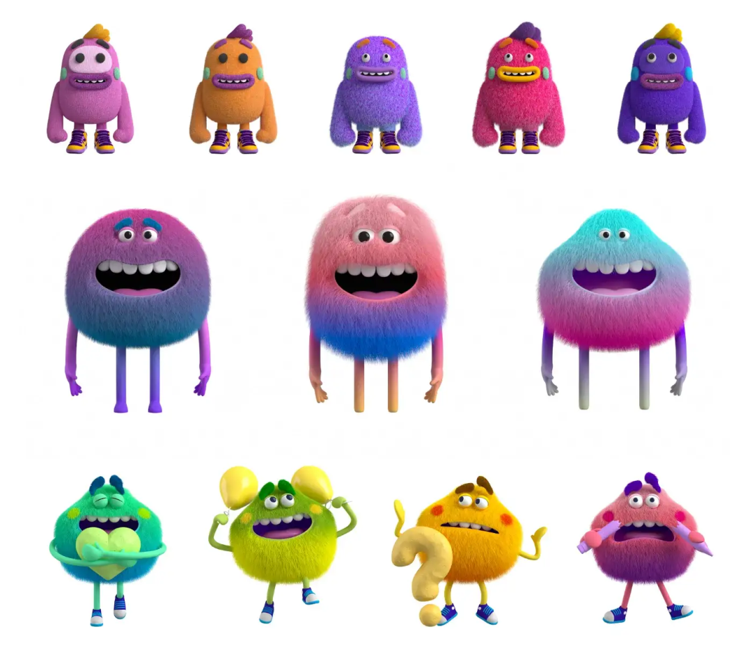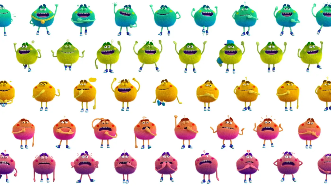 他们想要生动的色彩来展现他们充满活力的内心世界。在这一切中,圆滚滚的、柔软的情绪怪兽诞生了。这个变色的角色也结交了年轻人和大学生。Turkin说:“我们发现,在皮克斯电影中长大的这一代孩子在拥抱毛茸茸的怪物,以表达成年后的感受方面没有问题”。