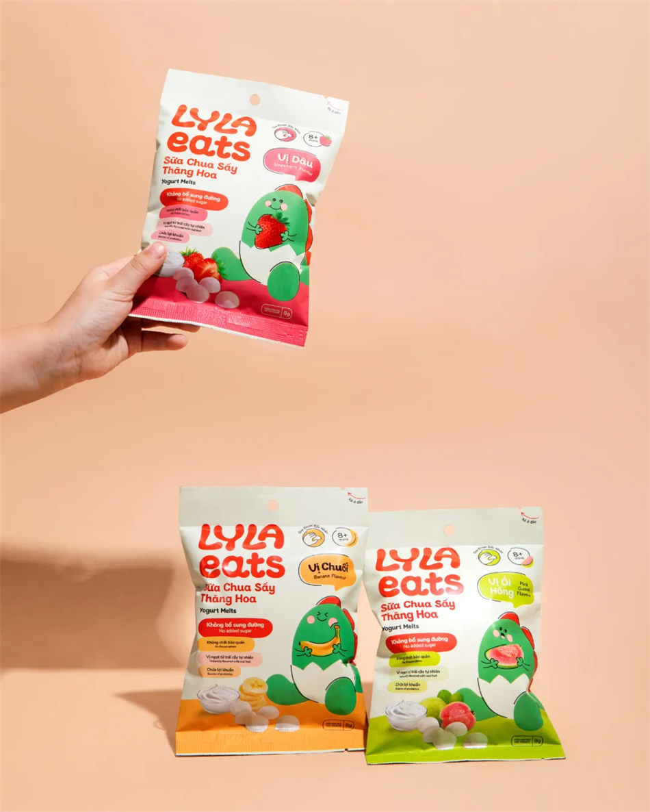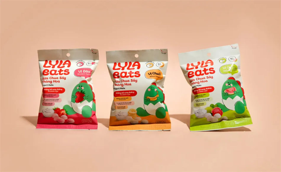 Lyla Eats 儿童膳食补充剂品牌包装设计,卡通的小恐龙非常有亲和力