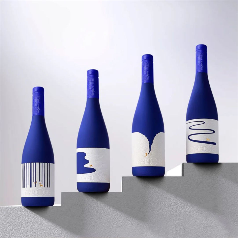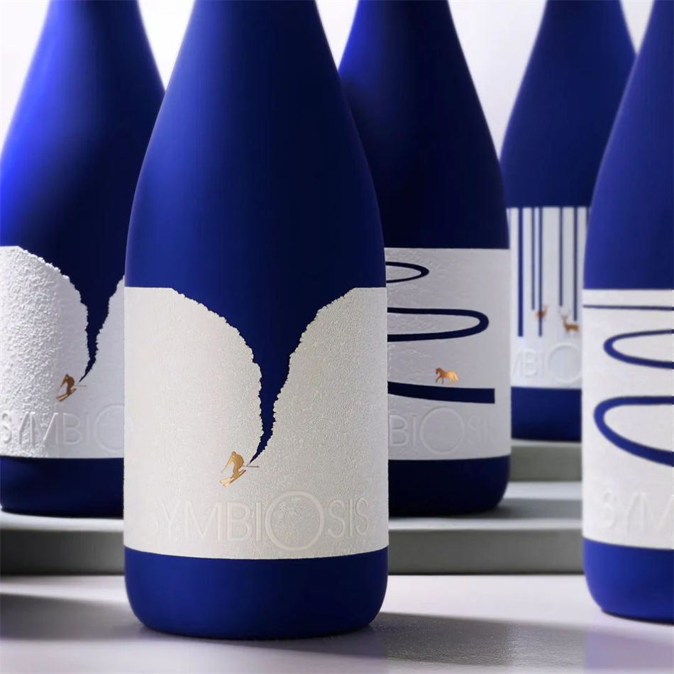 共生,即宇宙万物共生共存,互相关联又互相影响,品牌的经营理念以全新的视角和技法去呈现产品和品牌,此次共生葡萄酒包装设计创作以“最美瞬间”作为主题,从身边和大自然中寻找灵感,记录宇宙万物之间共同合作的最美瞬间,以白葡匐酒作为此次创作的载体,在酒标处进行创意的表达,分别从四个场景(森林、沙漠雪山、草原)获取灵感,记录最美瞬间。以蓝、白色做为主体,金色做点缀,并以大面积留白的表现技法,体现大自然的意境之美,同时体现产品的高级品质感。