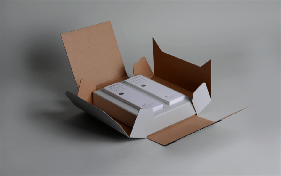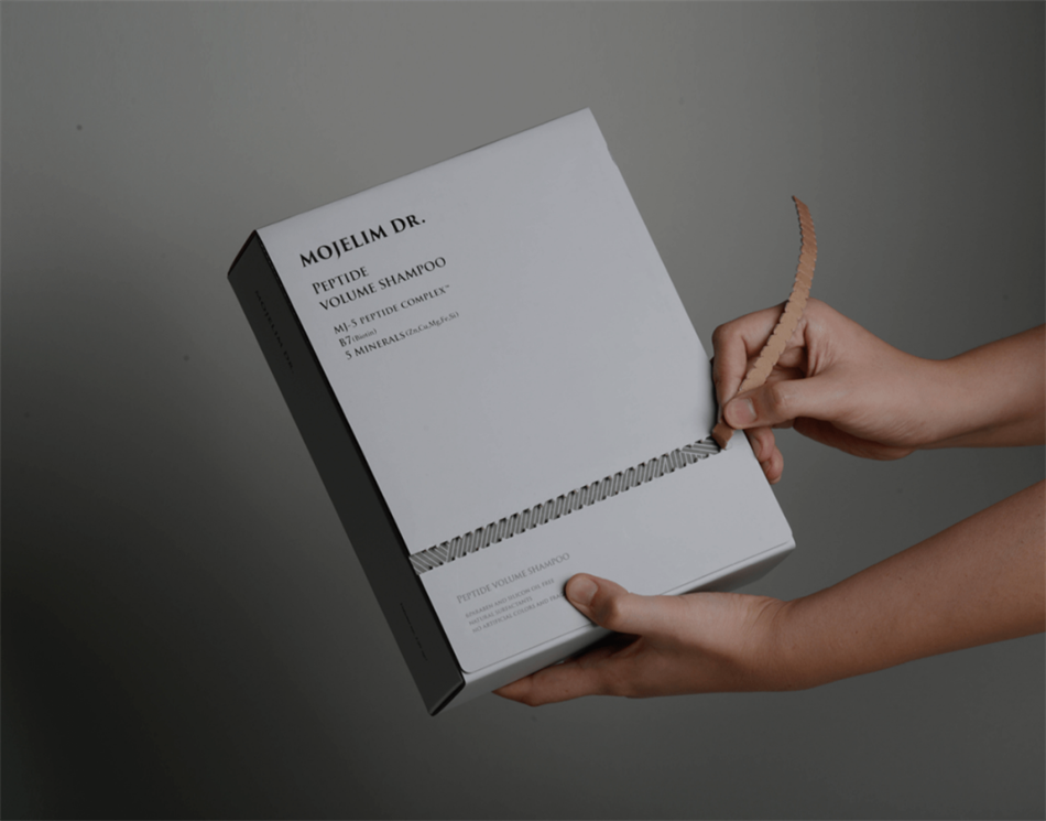 Mozerim Doctor洗护产品包装设计,外盒及容器瓶身几乎没有图案设计,所有文字内容左对齐,视觉上简约且理性。外纸盒采用可撕式设计,增添了打开的仪式感,方便还解压。每一层纸盒撕开后首先看到的是不同角度的斜线条构成的纹理,与外层的白色形成视觉反差,从而产生视觉跳跃感。可以感受到每个细节都有精心设计,让消费者记忆深刻。