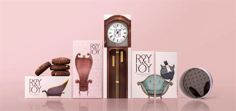 R & J是一个茶和茶点品牌。品牌的核心诉求在于如何快速的塑造一个高级感的产品形象。此次的茶点品牌包装设计升级将人物定位在,维多利亚时代的友谊和冒险。我们通过丰富的故事情节和生动的人物形象《Roy & Joy》,来带领顾客踏上一场充满美食风味和想象力的愉快旅程。