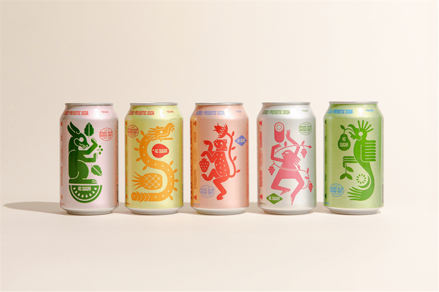 墨西哥MAYAWELL苏打水饮料包装设计,每种口味除了用颜色区分外,每款产品的插图还使用了动物的剪影与植物结合构成,比如猴子的尾巴与植物的花朵结合,非常富有想象力。