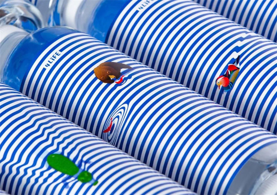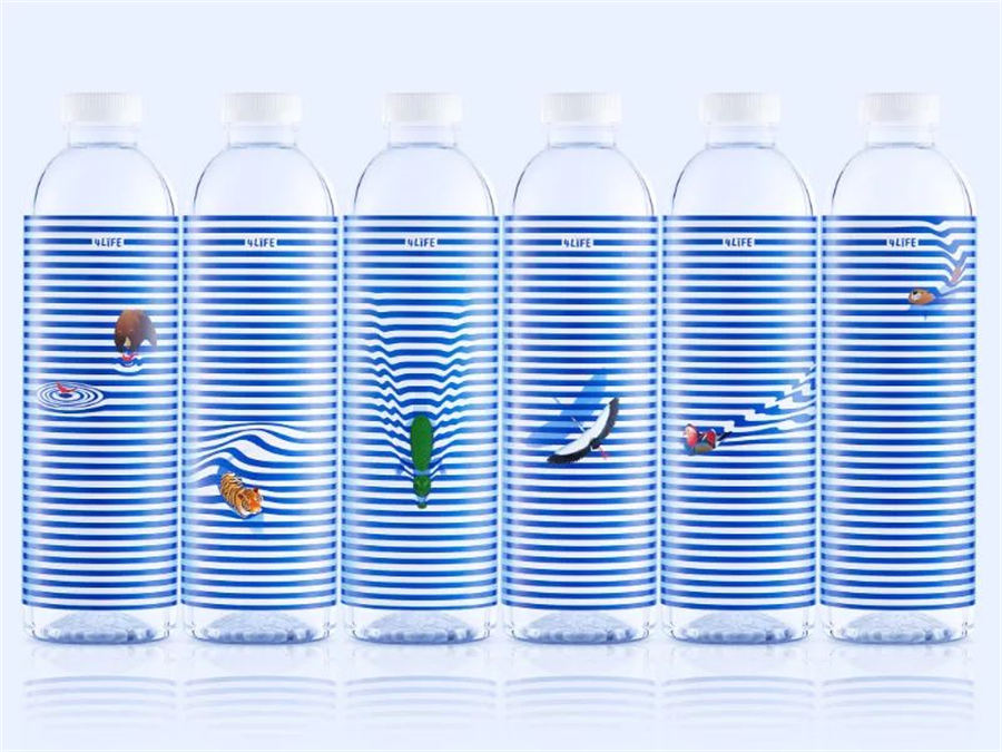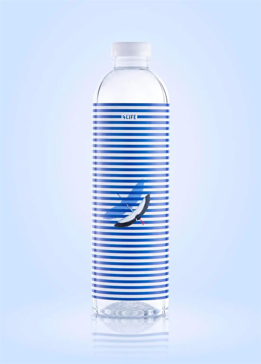 这款矿泉水包装设计结合自然优美的环境,通过插图的形式传达了动物如何与水和谐共存的场景。例如,火烈鸟在飞翔,老虎在游泳,鳄鱼在波浪线中爬行,每处细节都充满呼吸感,指尖抚过瓶身时,仿佛能触到浪花的清凉。这些跃动的生命图景,不仅构建出沉浸式的自然美学体验,更在提醒我们:每一滴水都是维系万物的生命纽带——这正是4Life品牌诞生的初心。