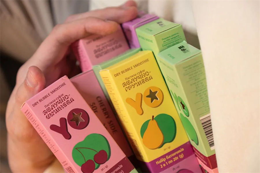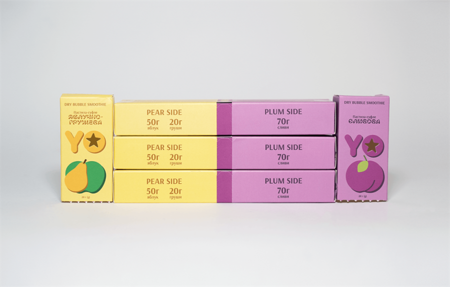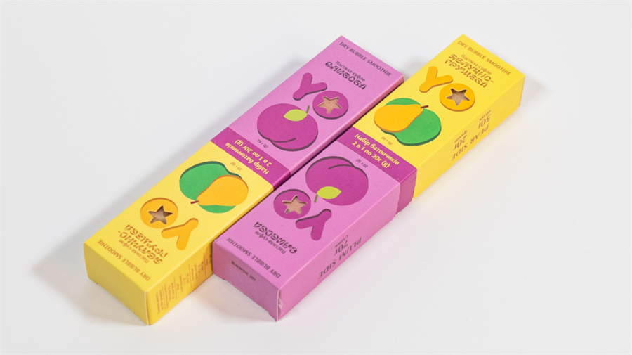 YO这款手工蛋奶酥最大的卖点在于,我们开发了二合一口味的产品及手工蛋奶酥包装设计。他可以满足消费群体不同的口味需求,在早餐场景或者在饥饿的时候给你提供不同的味蕾满足感。当你购买双份的时候,你将会拥有4种不同的口味。YO这款手工蛋奶酥外包装设计采用了模块化的设计,将不同味道的蛋奶酥通过上下分割,中间做易撕线设计,这样您就可以轻松选择想要品尝的口味。并且产品同时也考虑到儿童消费群体,在配色及图案选择上都较为中性。包装简洁的水果插画图案,可以直观的分辨产品口味,包装鲜艳的配色让人看着更有食欲。