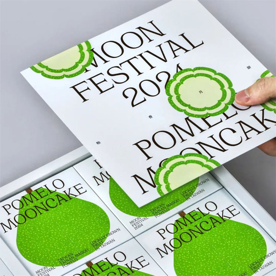 这款台湾柚子月饼包装设计盒子里有四张贺卡,每张贺卡都装饰着柚子主题元素,与里面的四个柚子月饼相呼应。这些卡片可以让送礼者与所爱的人分享温暖的祝福,传播幸福,庆祝团聚。从有趣的开箱体验到感人至深的贺卡,这款精心设计的礼盒完美地捕捉了节日气氛,为收到礼盒的人创造了持久的回忆。