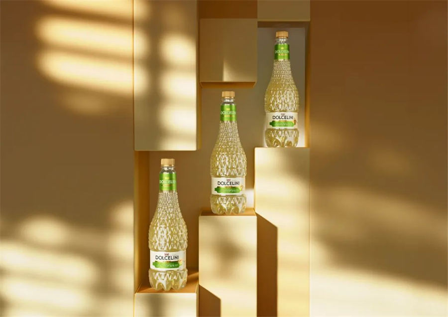 这个多乐里尼酒精饮料包装设计是基于一个优雅的钻石图案,反映了水在意大利著名的阿马尔菲海岸闪闪发光。在塑料瓶上,这种图案是通过成型产生的,使表面表现力和质地。在铝罐上,图案是打印和加强铝底座的光泽,创造一个闪烁和轻量级的效果。