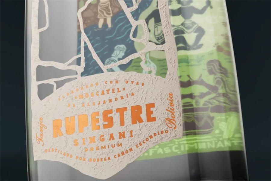 Rupestre Singani酒包装设计,灵感源自玻利维亚塔里哈地区的祖先文化