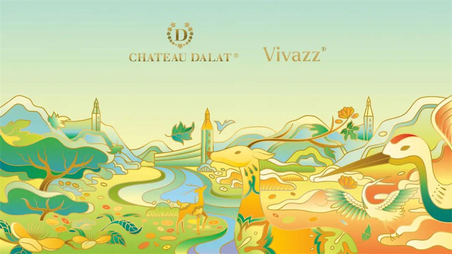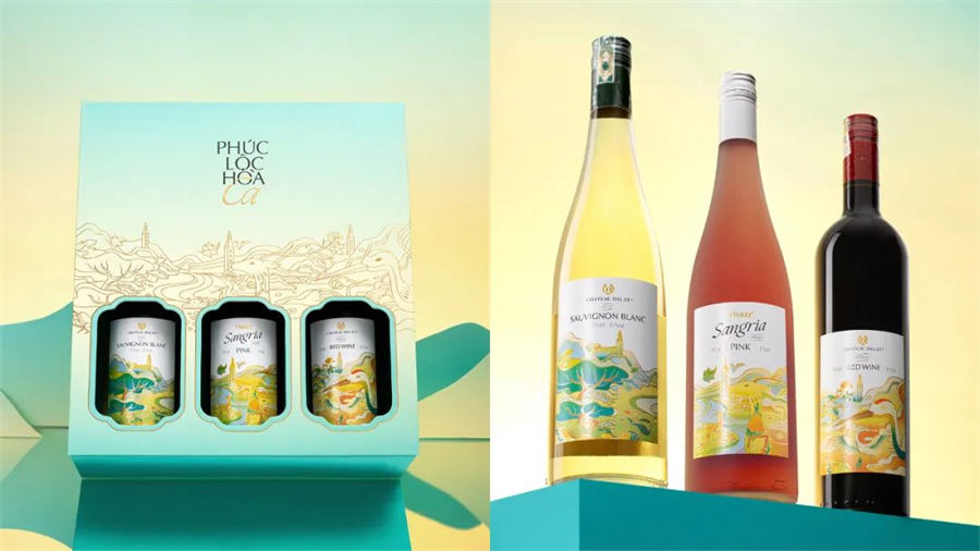 这款国潮风格的Chateau Dalat葡萄酒包装设计,通过美丽的艺术画来表达 对收礼人的真诚祝愿
