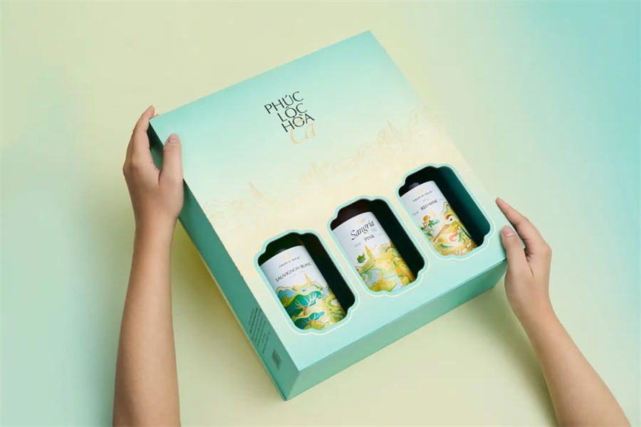 这款国潮风格的Chateau Dalat葡萄酒包装设计,通过美丽的艺术画来表达对收礼人的真诚祝愿