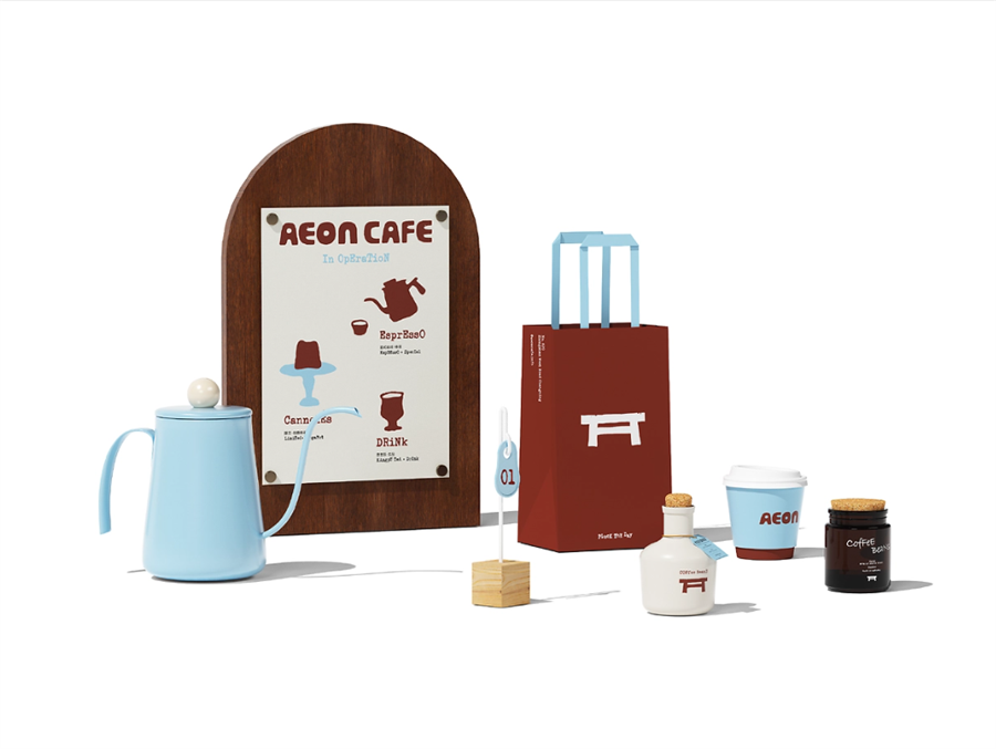 AEON CAFE是一家探索咖啡、可露丽、生活方式的全新品牌,AEON在哩语中是千万年的意思,我们希望通过独特的视觉语言,打造AEON不可复制的品牌气质,通过一点点刻意的不完美,或是非标准化的无序感,来传达一种充满生命力的视觉美感。