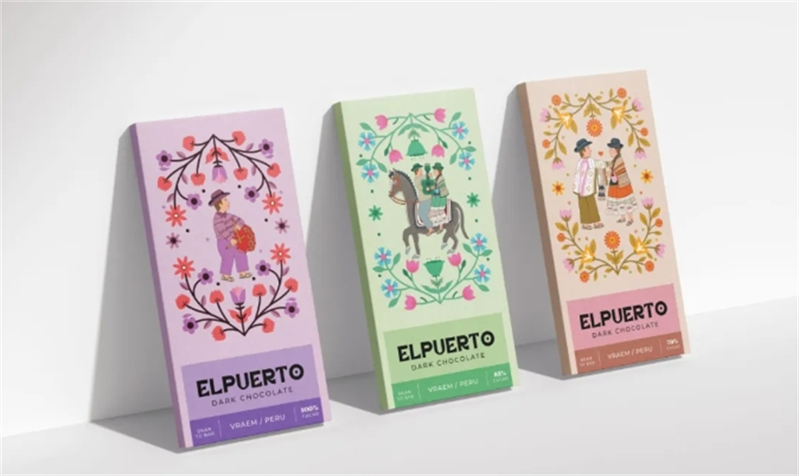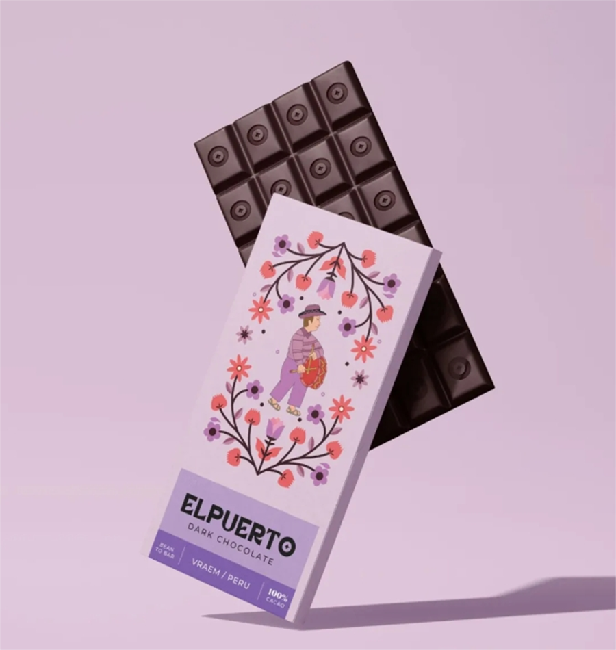 Elpuerto巧克力包装设计灵感源自著名的萨尔瓦木板文化,它是国家文化遗产的一部分,木板上讲述着每个家庭成员的故事。如今,这些图案不仅被绘制在木制的日用产品上,同时也出现在织物上。这些图案描绘了故事、传说、日常生活、聚会、古今时事,甚至一些个性化的内容。