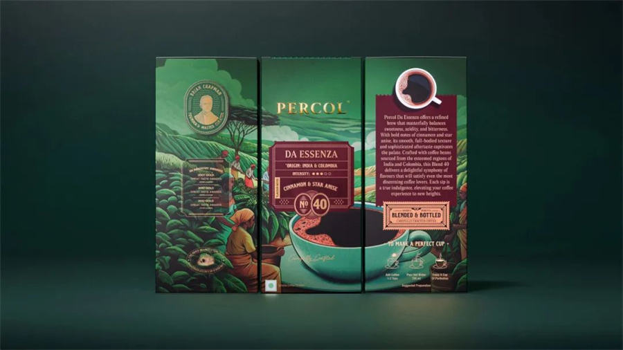受威士忌标签的启发,Percol品牌咖啡包装设计将起源和味道的故事直接整合到包装的前面。每个变体都被分配了一个唯一的号码,为每个风味配置文件创建了一个独特的身份。这种设计转变确保了Percol不仅仅是货架上的一种咖啡,而是一种精致品味的声明。Percol品牌咖啡包装设计是为了炫耀,骄傲地陈列在货架里,象征着饮酒者精致的味觉。通过这种包装,Percol体现了一种精致的生活方式,使它不仅是一种享受的咖啡,而且是一种荣誉的徽章。