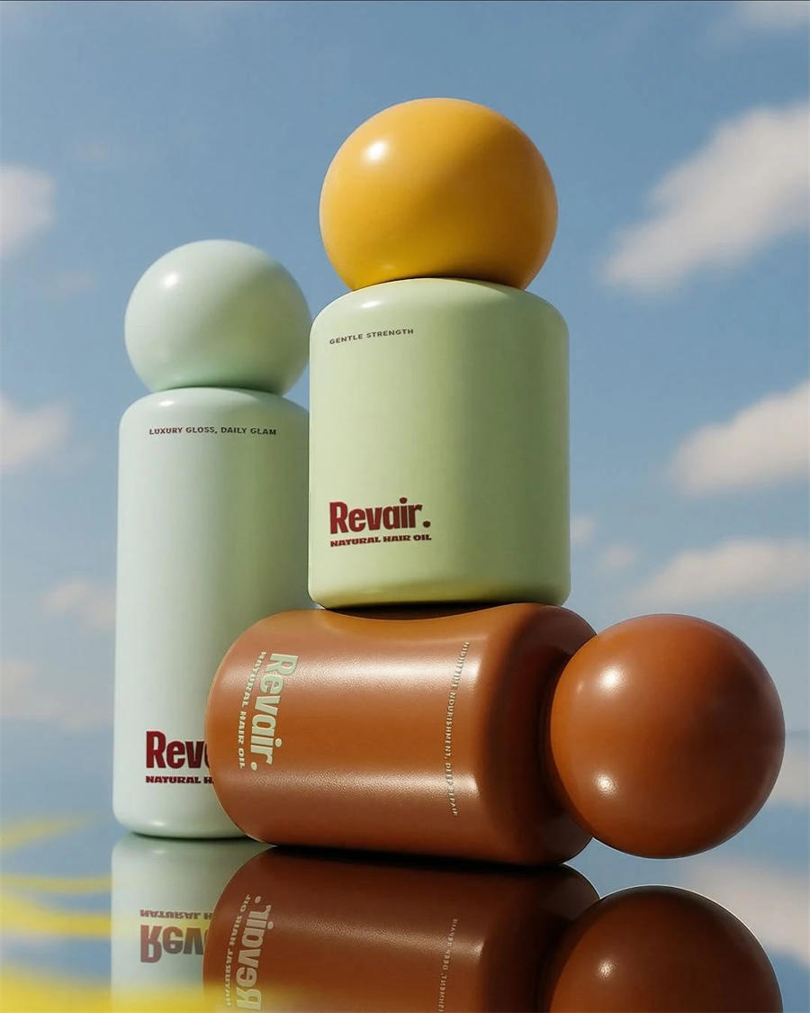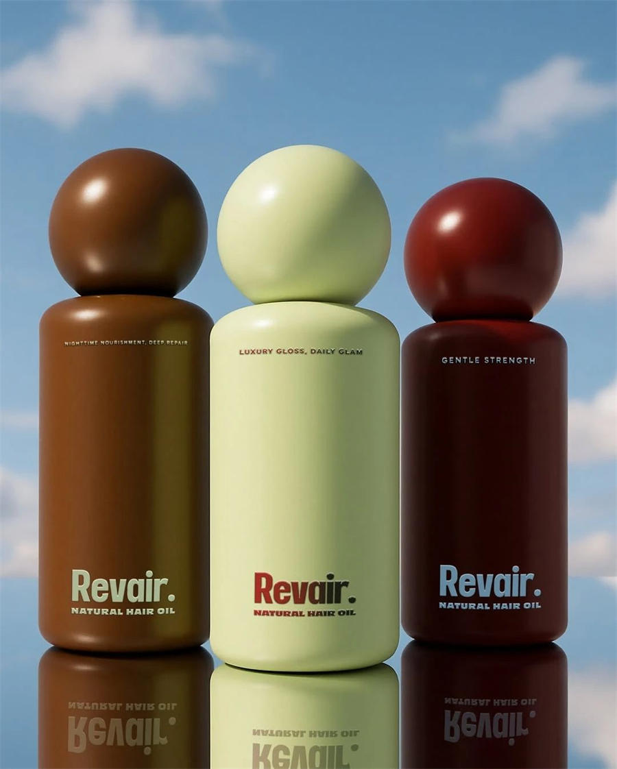 Revair天然发油包装设计,重新想象。现代公式标志性的Revair天然植物发油包装设计瓶子,真正的结果。对于每一个卷发、线圈、扭结和皇冠——这是治愈的补水,会发光的滋养,和感觉一样好的护理。💦
