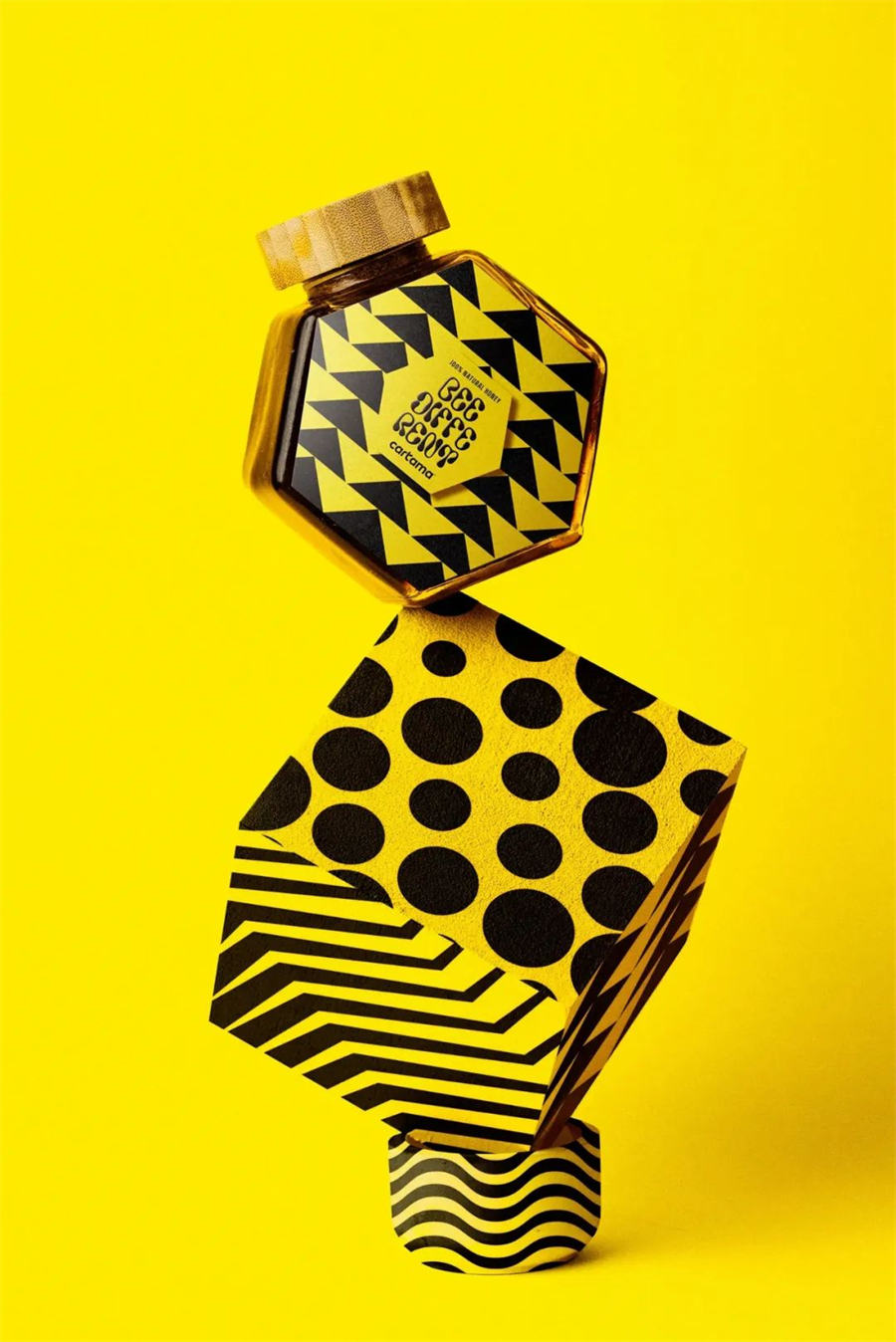 这款蜂蜜包装设计用重复的几何图形来表达与众不同