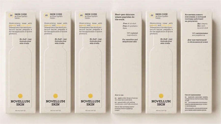 本篇文章主要是对精致的Novellum Skin护肤品包装设计,解码几何美学的分享,是由设计工作室 Kseniia Selezneva创作设计的护肤品包装设计方案,希望可以给您带来设计灵感和参考价值。