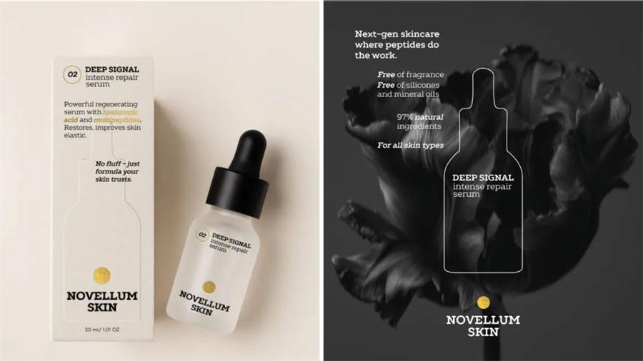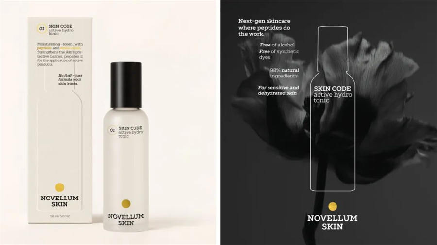 Novellum Skin是新一代的护肤系列,通过精致的护肤品包装设计融合了科学和美学。每一种产品(精华液、爽肤水和面霜)都采用先进的多肽技术,是修复皮肤的一部分。包装将定制的玻璃容器与最小的盒子配对,反映了功能性和设计价值。