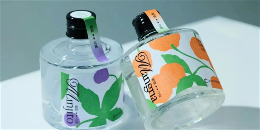 Mangria 丰盛之泉以明亮果香为主调,瓶标下缘波浪代表泉水涌动,搭配圆形水珠图示强化清新感;Minjito 绿野之风则为与 NONZERO 农场联名草本特调,瓶标上缘波形象征微风吹拂,品名旁的小逗点,如风轻拂叶面。整体纯露包装瓶标设计引导消费者进入嗅觉与视觉交融的静谧仪式,体现肯园自然疗愈的品牌精神。