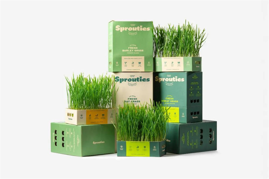 Sprouties猫草包装设计,促进猫咪无压力和快乐陪伴