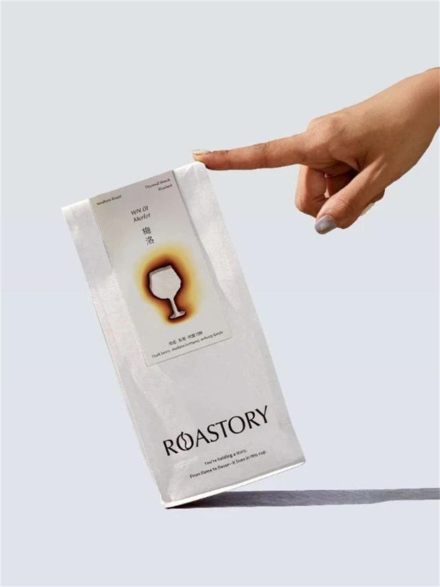 拒绝冷极简,拥抱「温度感」:区别于高端品牌常见的冷淡风,Roastory 用哑光材质 + 局部光泽对比,摸上去有纸张的质朴,看过去却有火焰照过的暖光,没喝就先感受到烘焙的热度。