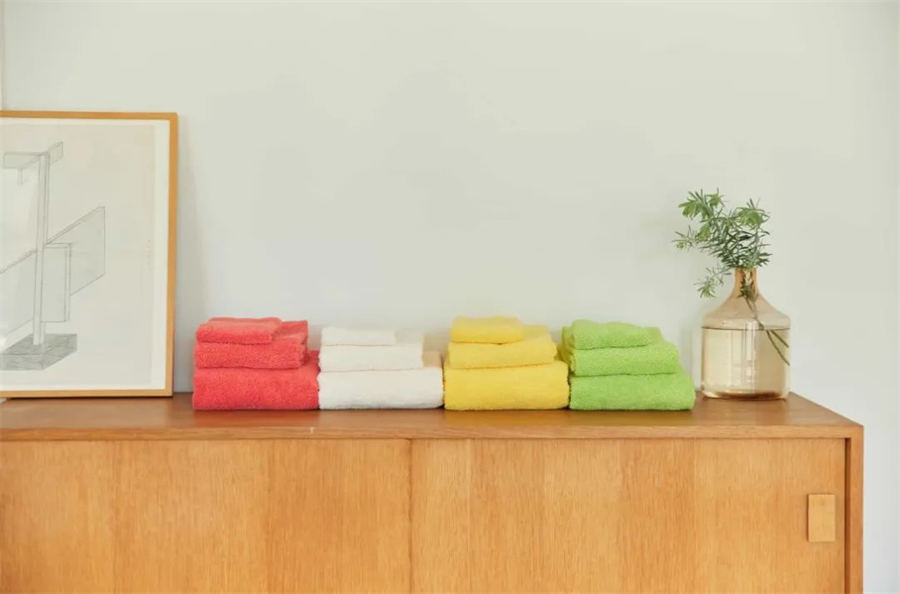 每种颜色又有三个尺寸的产品,分为擦手巾、擦脸巾与浴巾。简约的设计风格让品牌拥有了优雅文艺的生活气息。