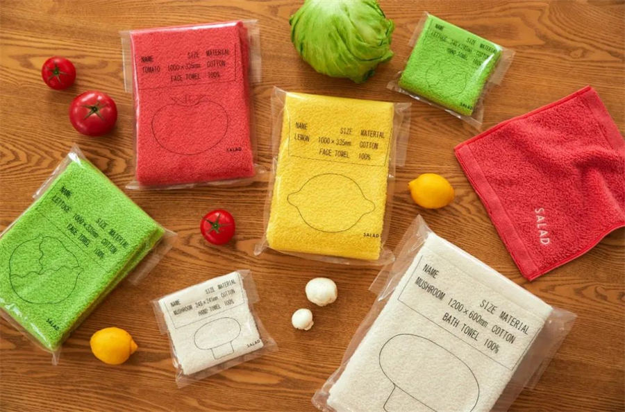 SALAD毛巾包装设计,巧妙的将果蔬与毛巾结合