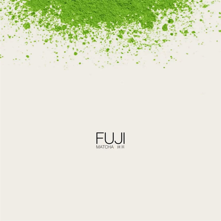 在视觉上,Fuji Matcha高端抹茶包装设计主体采用极简的白色,强化了日式优雅、纯净和克制。唯一的色彩表达是顶端“溅洒”的抹茶绿,这一克制且有意的色彩应用,如同茶道的致敬,完成了平面视觉向三维立体的转化。