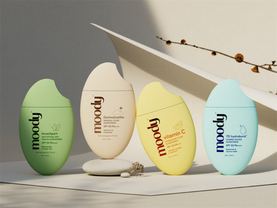 Moody是一款来自印度的防晒霜系列产品,该防晒霜包装设计围绕温和的保护,保护皮肤的优良配方,以及根植于平静和清晰的设计语言,打造了一款独具特色的防晒系列,以达到品牌简约和舒适的理念。