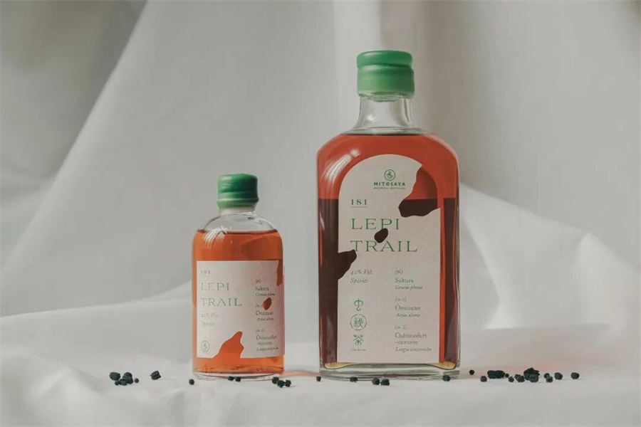 Chuhicha(虫秘茶)是一种新型茶饮,它蕴含着生命的神秘与自然循环——由取食植物叶片的昆虫粪便制成。这并非简单的猎奇,而是一种对自然生态的深层致敬。LEPI TRAIL 是以这种特殊的“樱花虫秘茶”为基底,与 mitosaya Botanical Distillery 联合开发的实验性烈酒。