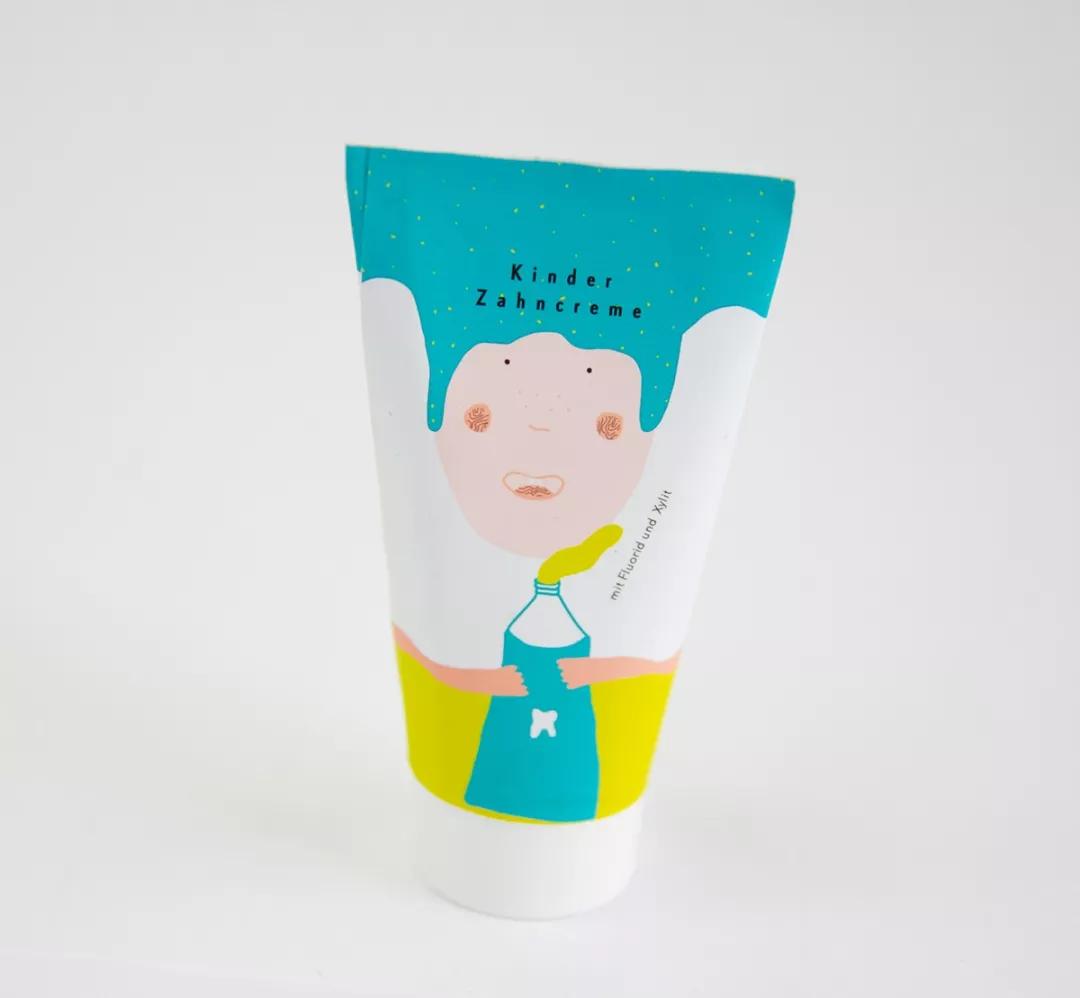 牙膏的包装设计有商务风格的、简约风格的等等,而比较适合那些充满童心的用户来说,卡通是 他们心中不灭的童话,因此下边这款卡通风的牙膏包装设计,一定会得到他们的喜欢称赞。